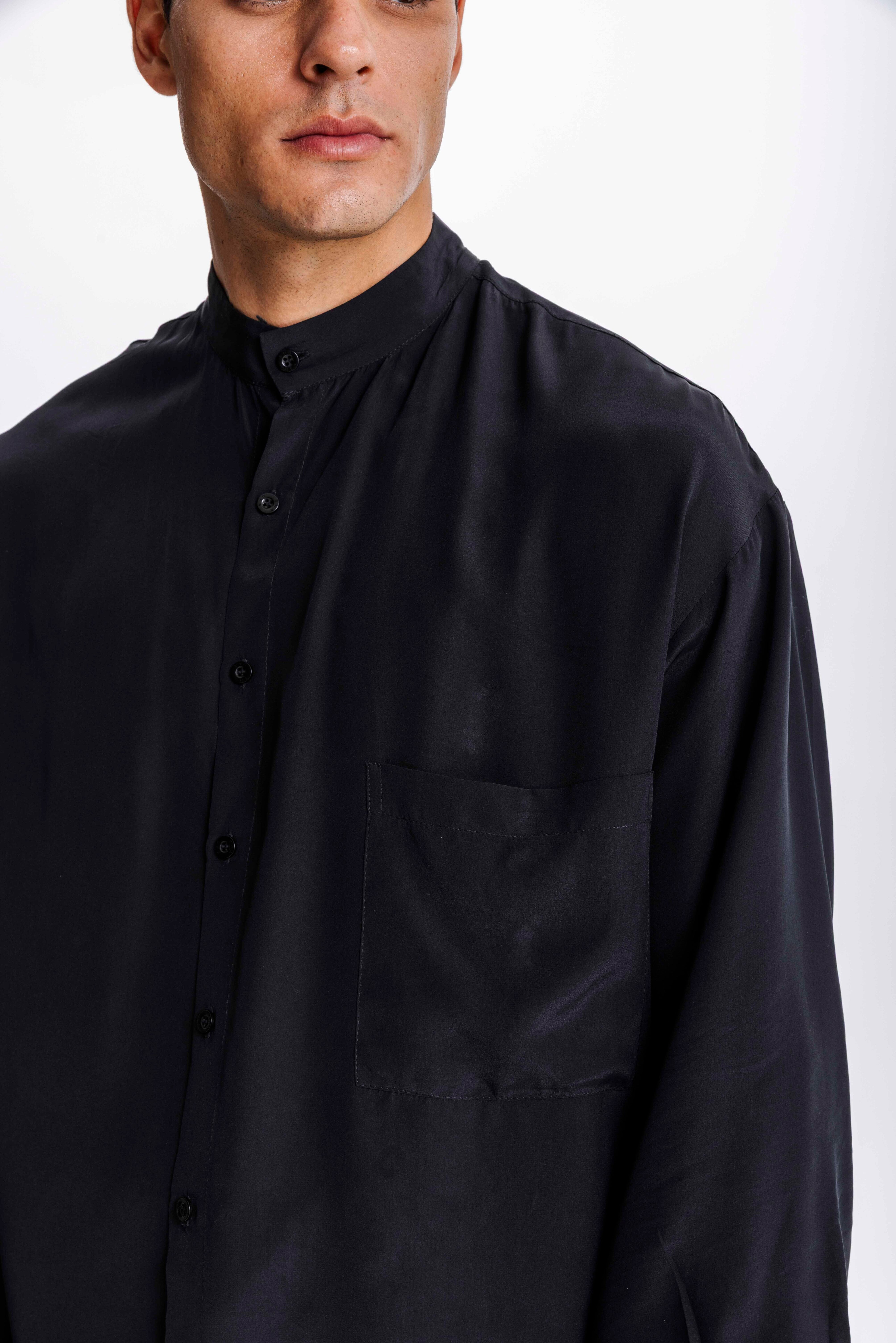 Com manga comprida e fechamento por botões discretos, a camisa une praticidade e elegância. O destaque fica por conta da gola padre, que adiciona personalidade e um charme moderno, tornando a peça perfeita tanto para ocasiões formais quanto para composições casuais com um toque refinado.